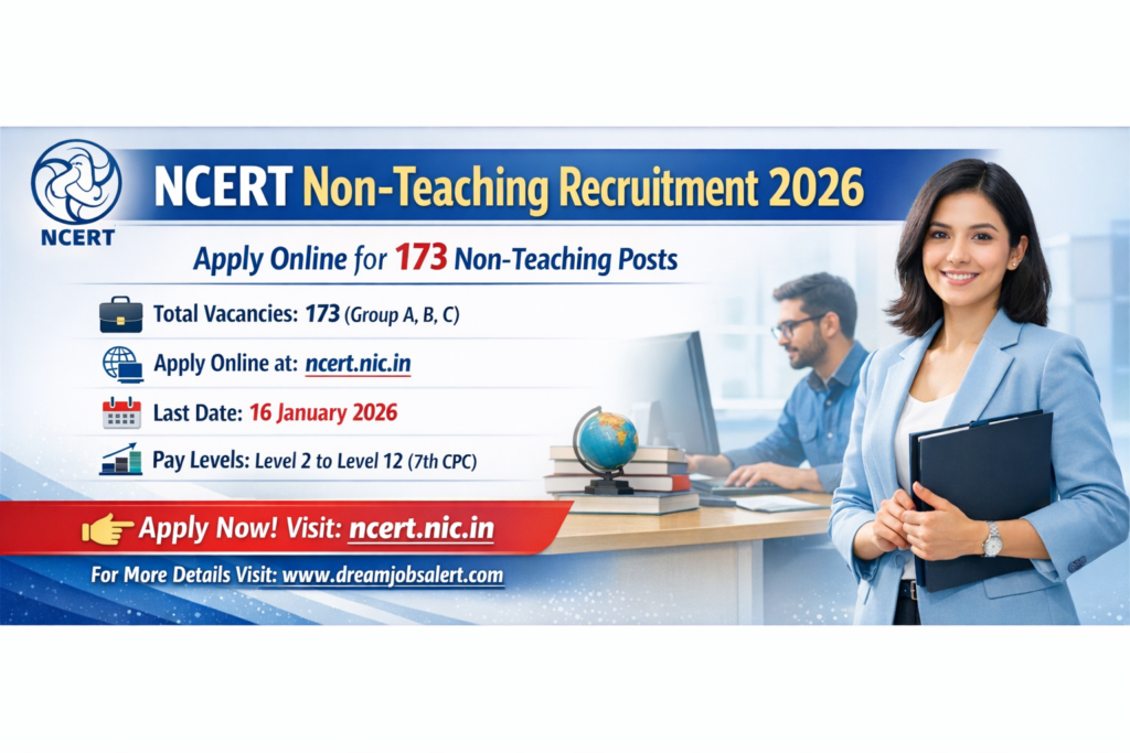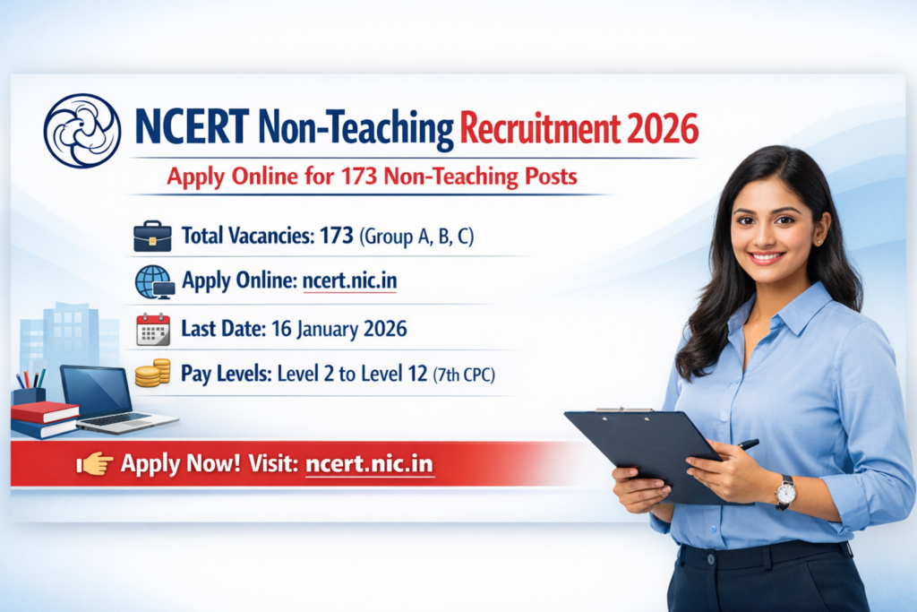 The National Council of Educational Research and Training (NCERT) has published an official notification for the recruitment of 173 posts of Non Teaching Posts. All the Eligible and interested candidates can apply online through The National Council of Educational Research and Training (NCERT) official website. The last date to submit the application form is 16-01-2026.